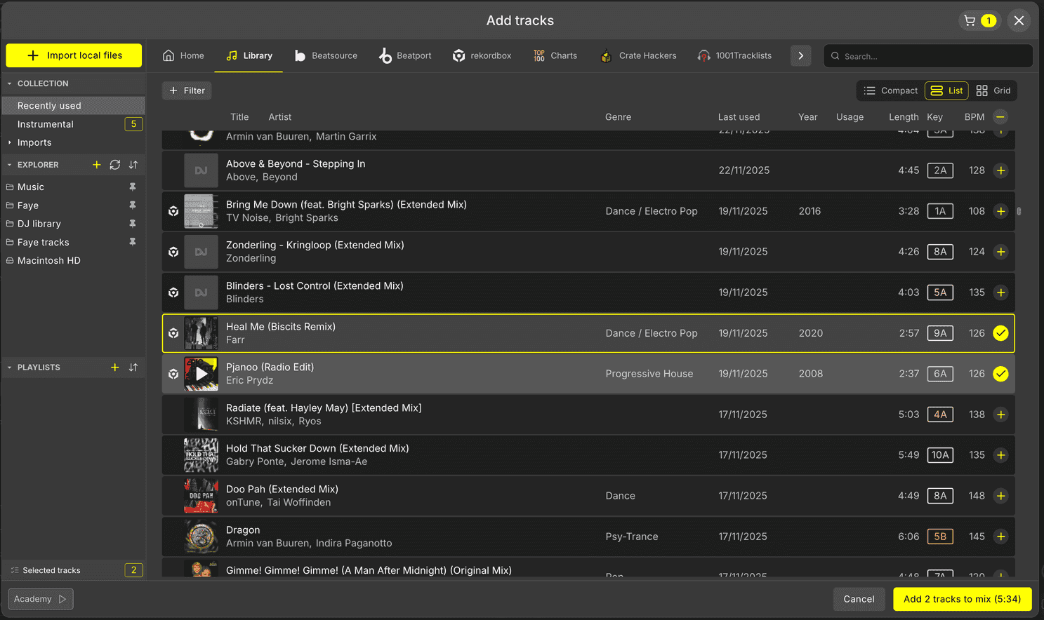 Browse music from 3rd party software libraries like rekordbox, iTunes, VirtualDJ, Mixed In Key etc.