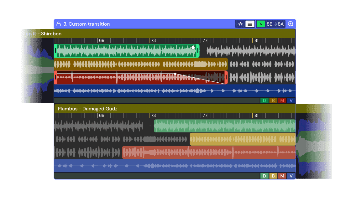 Thanks to DJ.Studio's Stem Separation expansion, you can get full control over creating stems and acapellas - you can split any track into its drum, bass, melodic, and vocal layers and edit them independently. You can also export any combination of stems, so you can create karaoke tracks, acapellas, and instrumental tracks, or use it as an AI vocal remover tool.Â