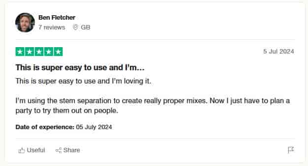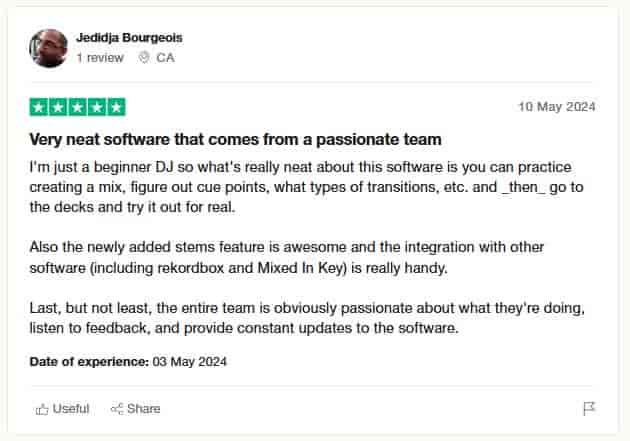 On Ease of Use for Complex Mixes: "DJ.Studio is a massive time saver for creating mixes. What used to take me hours in other software, now takes a fraction of the time. The transition editor is amazing and lets you fine tune your mixes to perfection. The user interface is well laid out and easy to understand. I love the new stem separation feature as well."