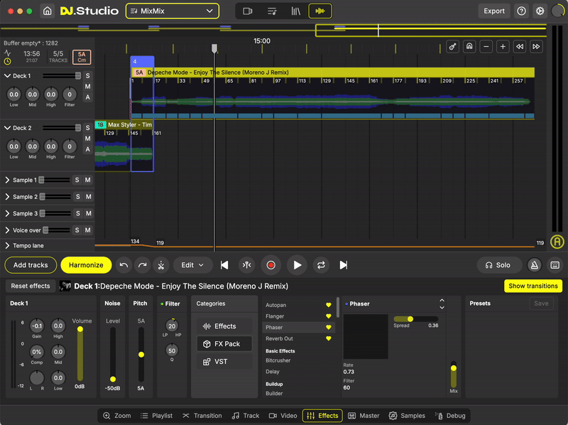 For those who crave more control, the editor unlocks a world of automation. You can dive in and automate any parameter you can imagine - EQs, filters, volume, panning, and a suite of built-in audio effects - with surgical precision. Using the timeline, you can draw in a slow, 32-bar filter sweep that builds tension perfectly, or create a rapid, rhythmic bass cut that adds punch and excitement. You can automate a reverb to wash out a vocal at the end of a phrase.