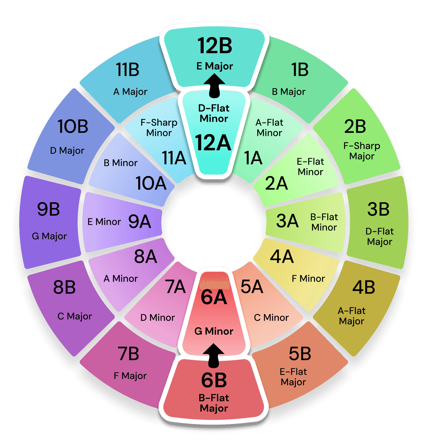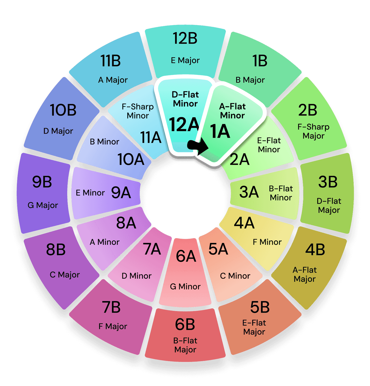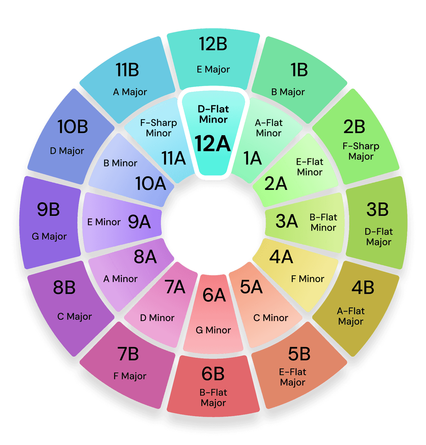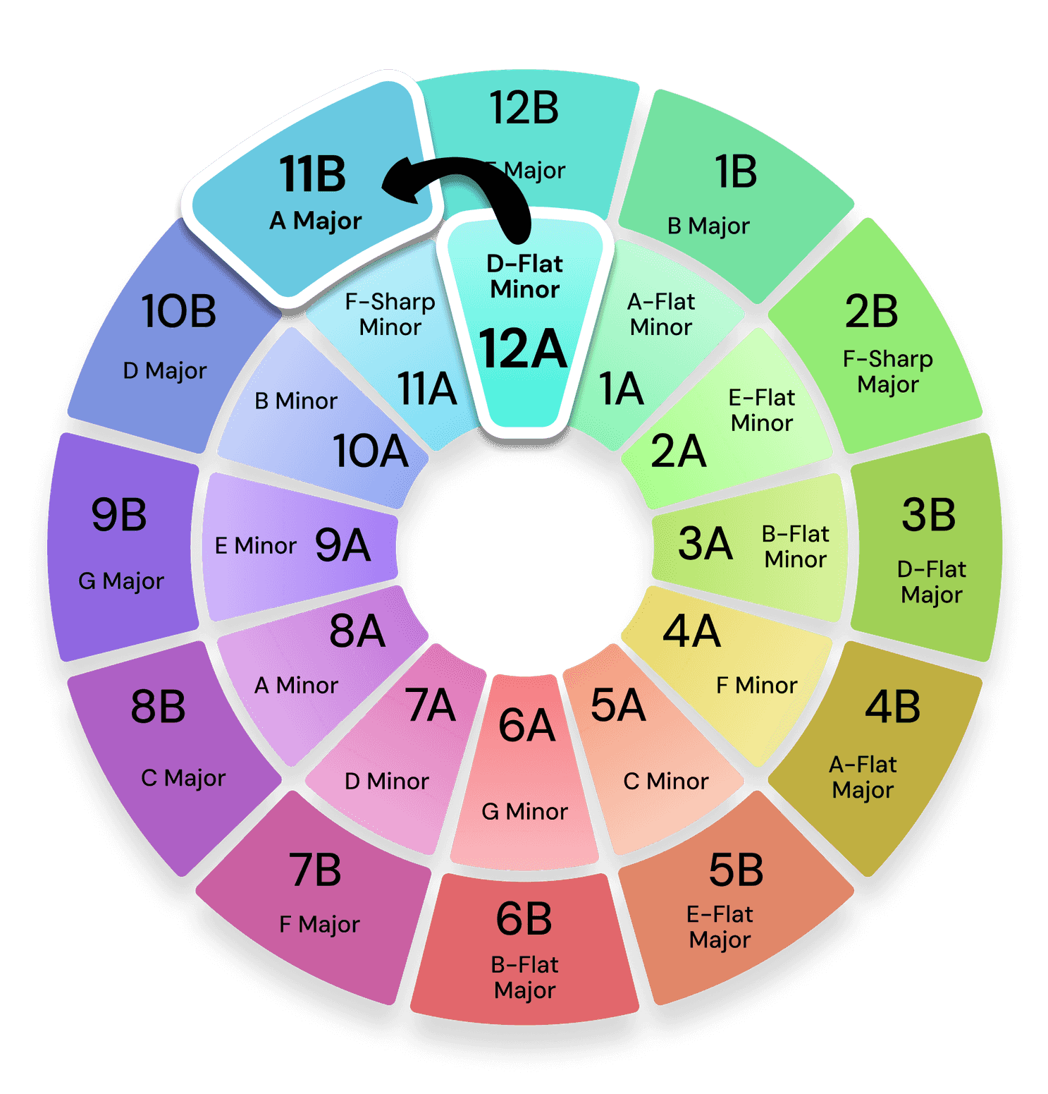 The Camelot wheel from Mixed In Key is a system for DJs that helps them to navigate musical keys, in order to mix harmonically.