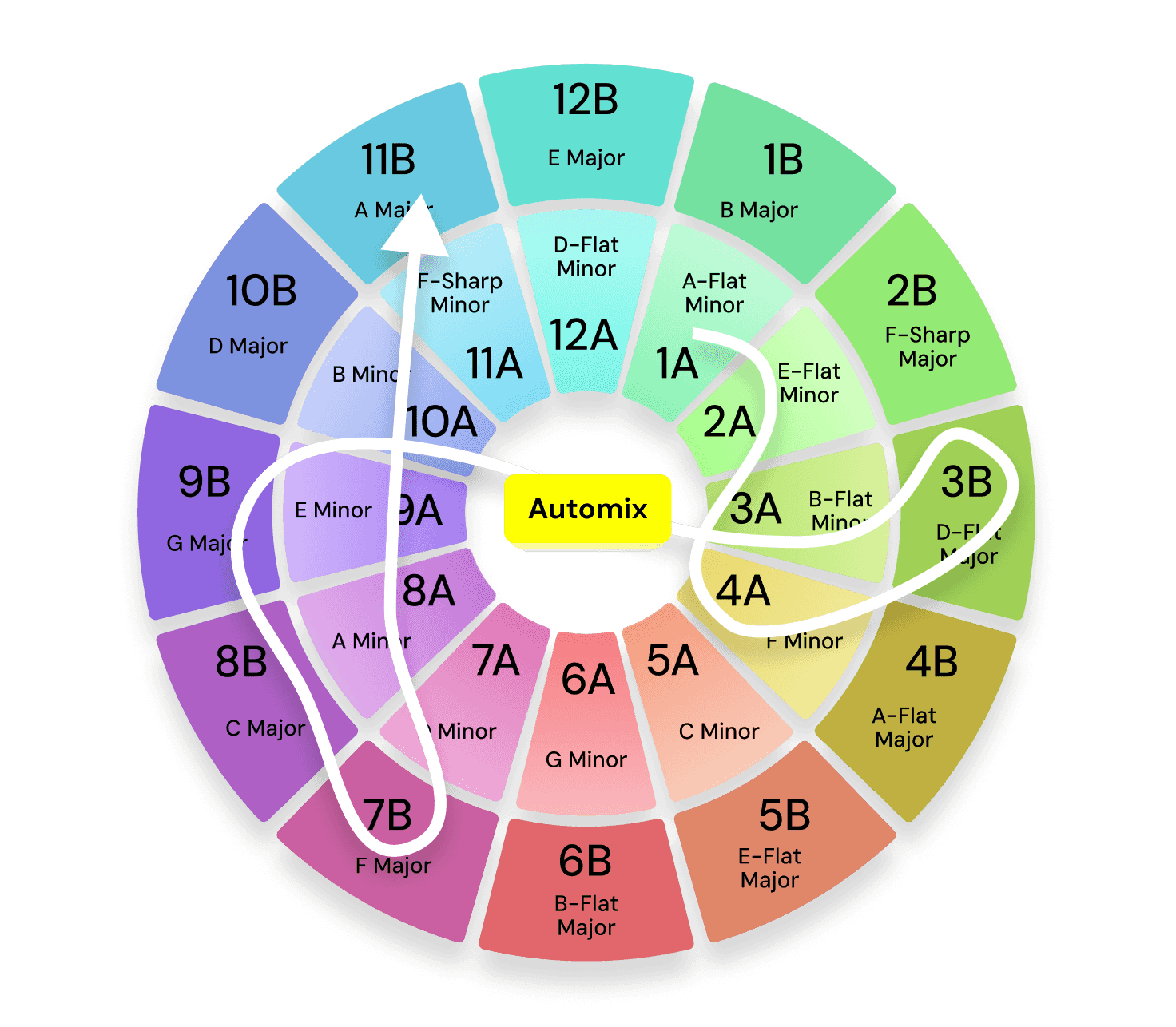 Harmonic mixing is the practical application of understanding DJ chords. By choosing tracks with compatible musical keys, you can create transitions that are incredibly smooth and sonically pleasing. The most common tool for this is the Camelot Wheel. When planning chord-based transitions, the Camelot Wheel maps out which keys work together for smooth progressions.