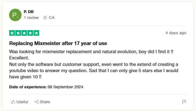 "Excellent software - Ideal to set up your mixes before doing live on your kit - streamlines the music into a logical order - by harmonic sound - Easy to navigate and use - Excellent" - Jason lee