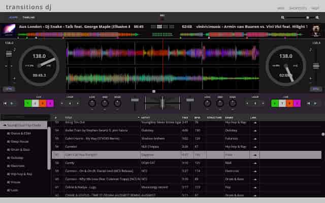Transitions DJ - This is another traditional-styled online DJ mixing app, that can connect with Soundcloud, or use downloaded files. It has some neat features, but I find it a bit ugly looking.
