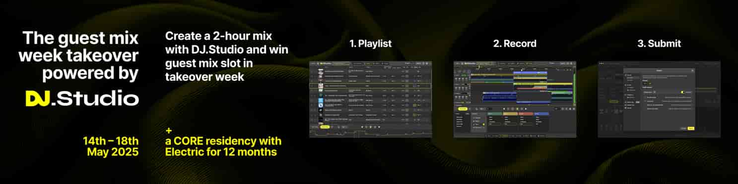 DJ.Studio is launching a guest mix contest that gives you the chance to secure one of 10 exclusive guest mix slots during the DJ.Studio Takeover week on Electric Radio! If you've got the skills to blend a killer 2-hour set and a passion for genres like House, Tech, Future, Progressive, Trance, or Techno, this is your moment to shine.