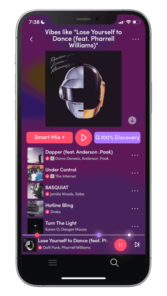 Additionally, it has a 'smart-mix' mode, which lets you play music from your library, as well as discover artists and new music - suggested to you based on your musical tastes. Essentially making the app act as your own personal virtual DJ. This lets emerging artists access new listeners, as their music may be recommended to somebody who otherwise would never hear of them.