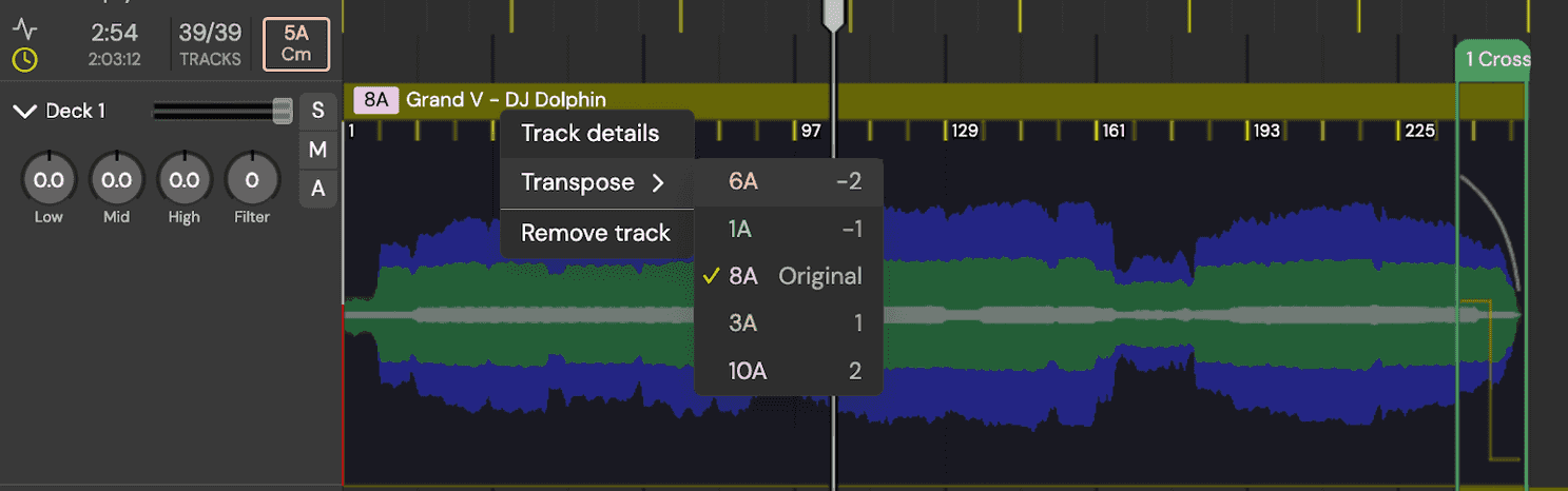 DJ transitions: Nudge a track ±1–2 semitones to land a green or near-green key match.