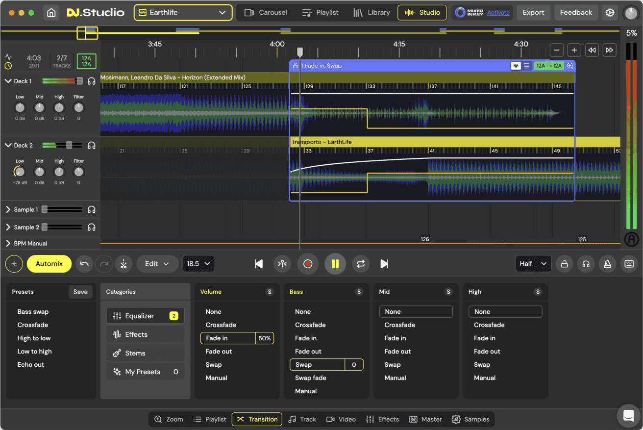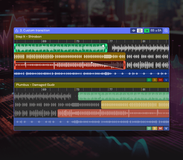 Custom Transitions: Using the Stem Transition Editor, DJs can automate the volume of different stems to create unique transitions between tracks. Options include crossfade, swap, and full transitions, providing flexibility in how tracks blend together.