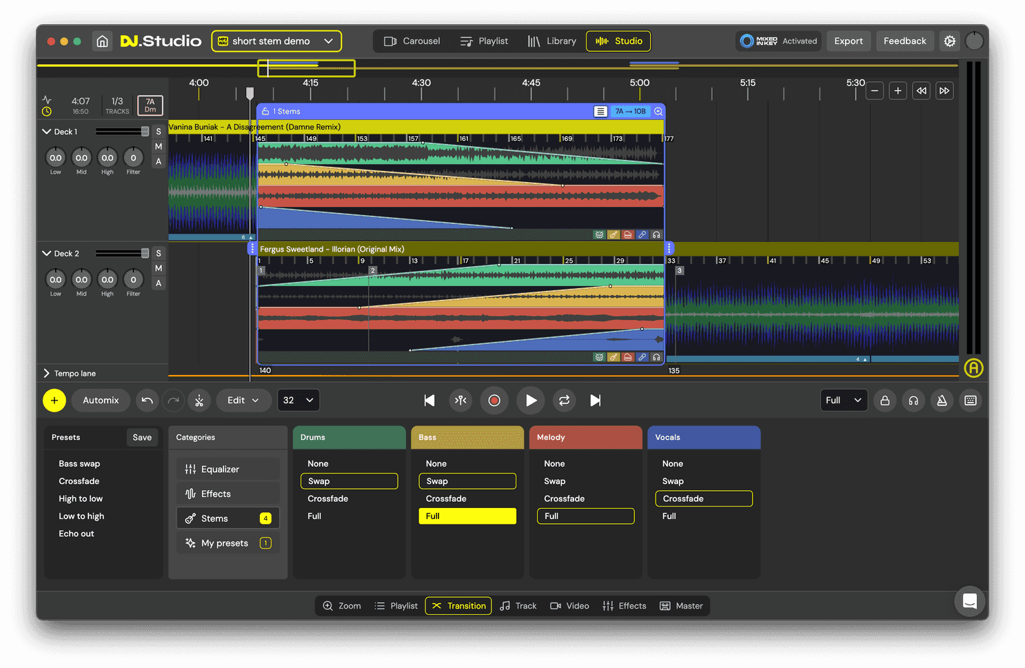 Automated Mixing – Speed up your workflow with intelligent automation that arranges transitions, BPM adjustments, and harmonic mixing, helping you craft pro-level mixes in minutes.