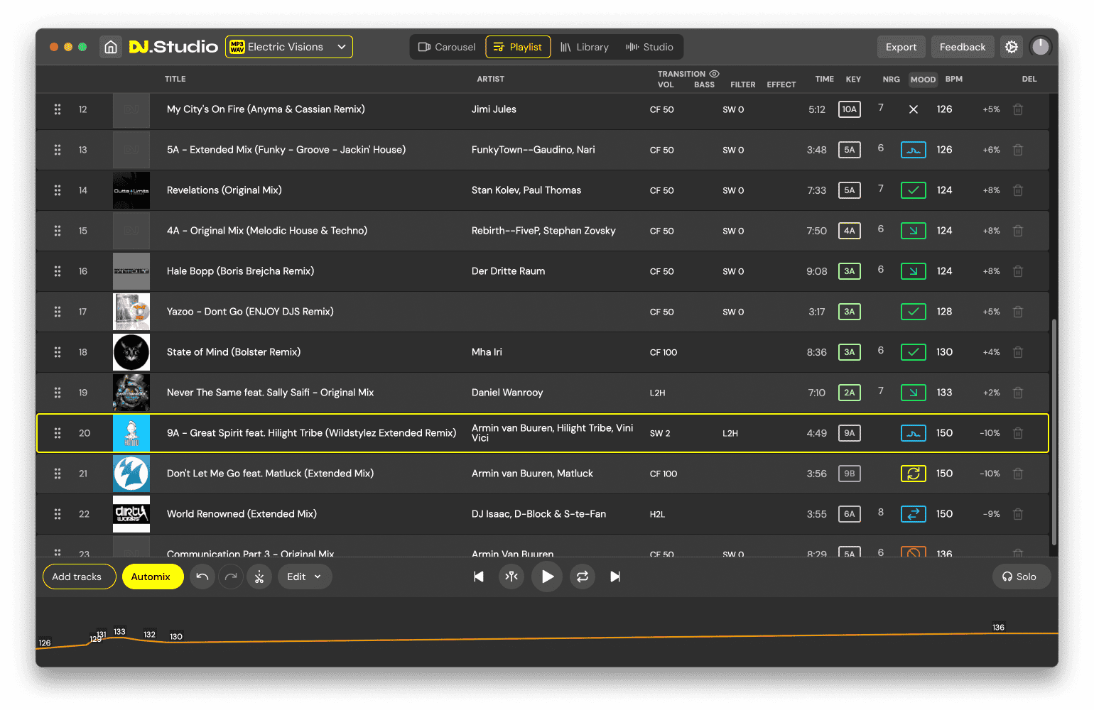 Curate Your Setlist: Arrange your tracks in DJ.Studio, testing different orders until you find the perfect flow. Start slow, build energy, drop the tempo – you're in control.